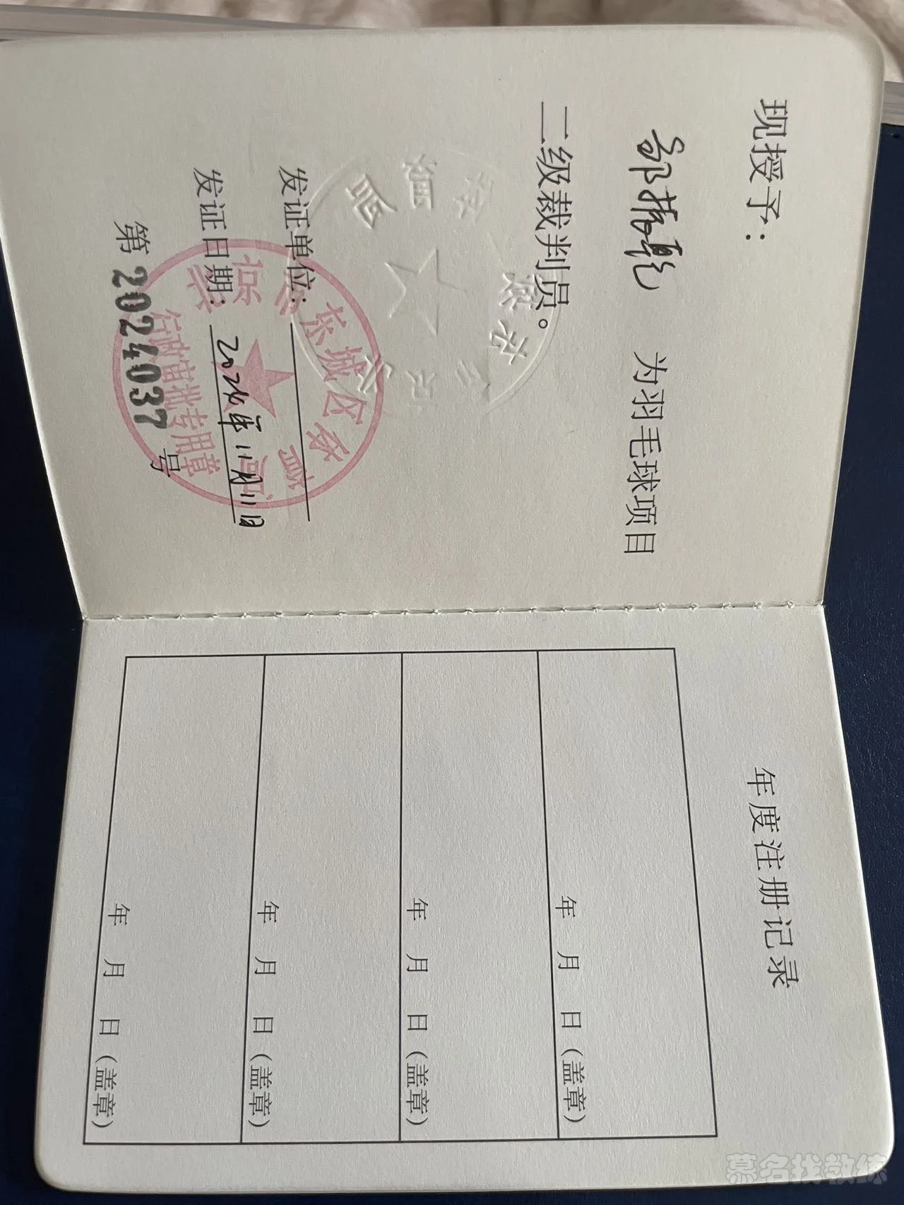 国家羽毛球国家二级裁判员