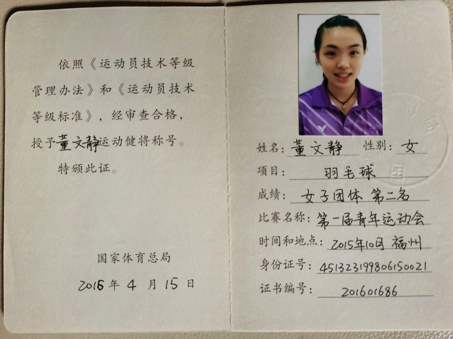 羽毛球 5年教龄 运动健将