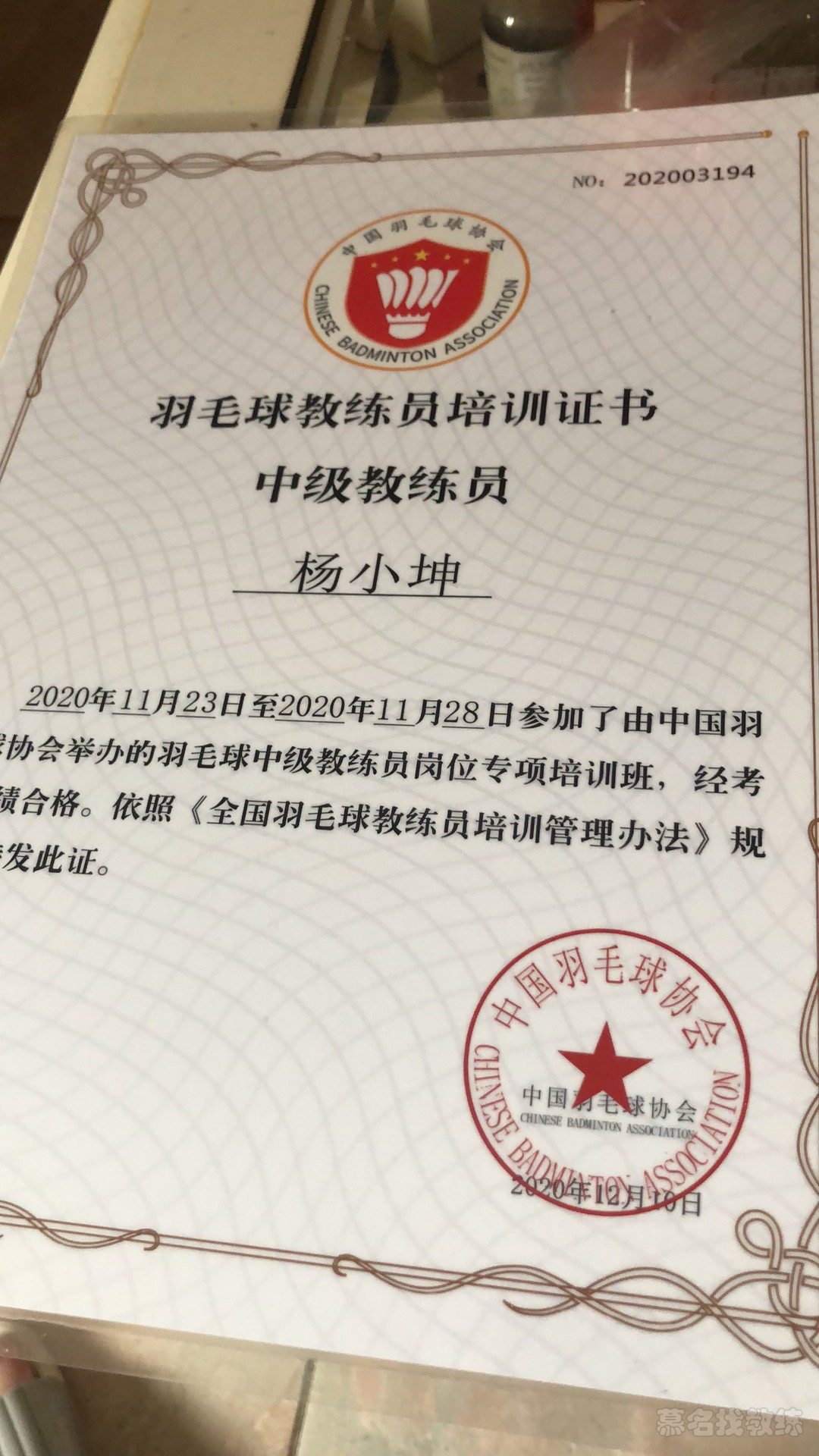 杨小坤 - 北京羽毛球教练