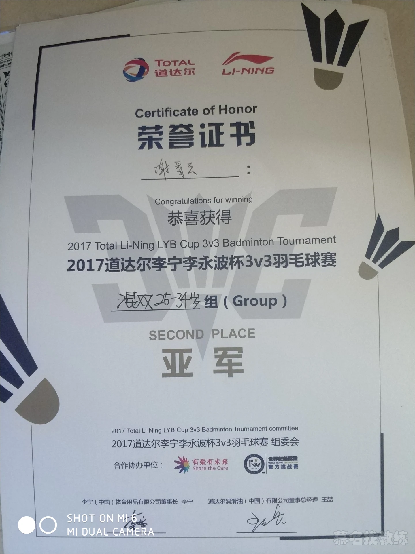 2020年锦江区中小学生锦标赛女子冠军国家职业资格证书,羽毛球项目2017李宁3V3单项亚军2017成都球王混双季军