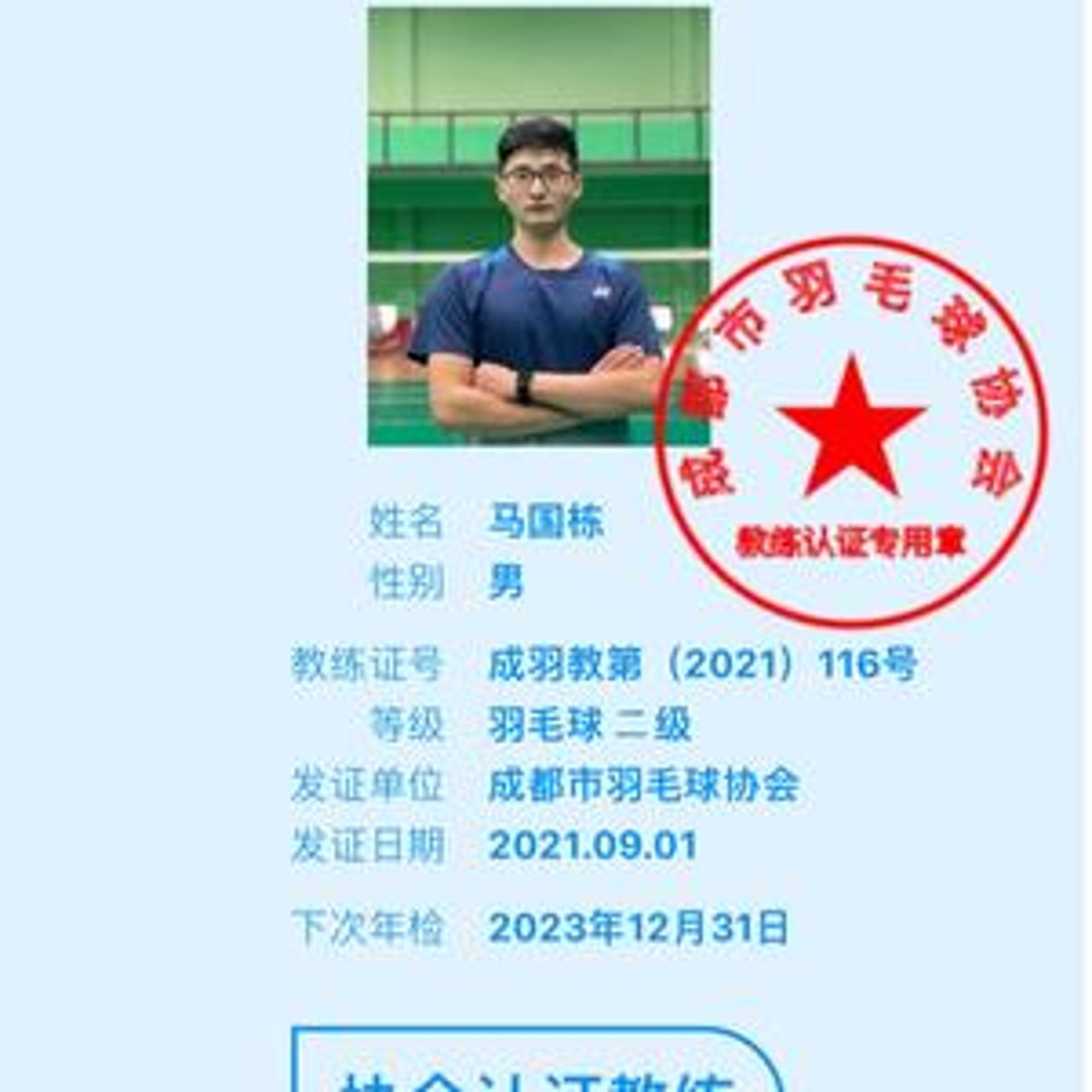 ZY3222——成都羽毛球教练