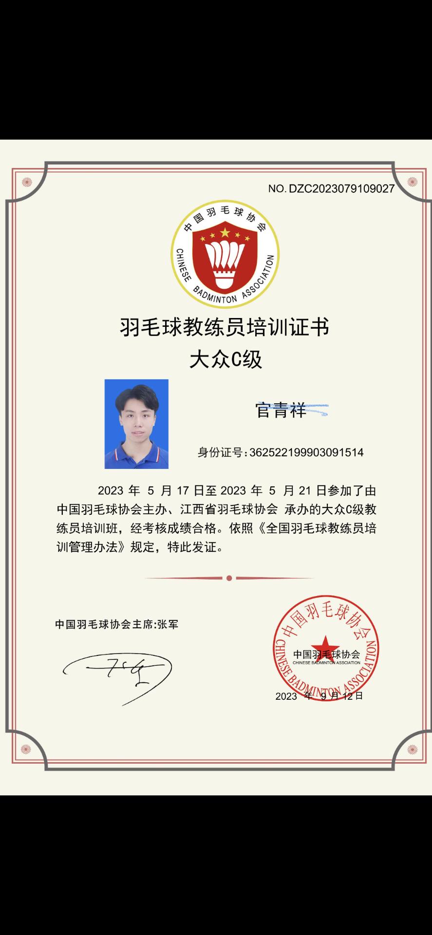 官青祥——抚州羽毛球教练