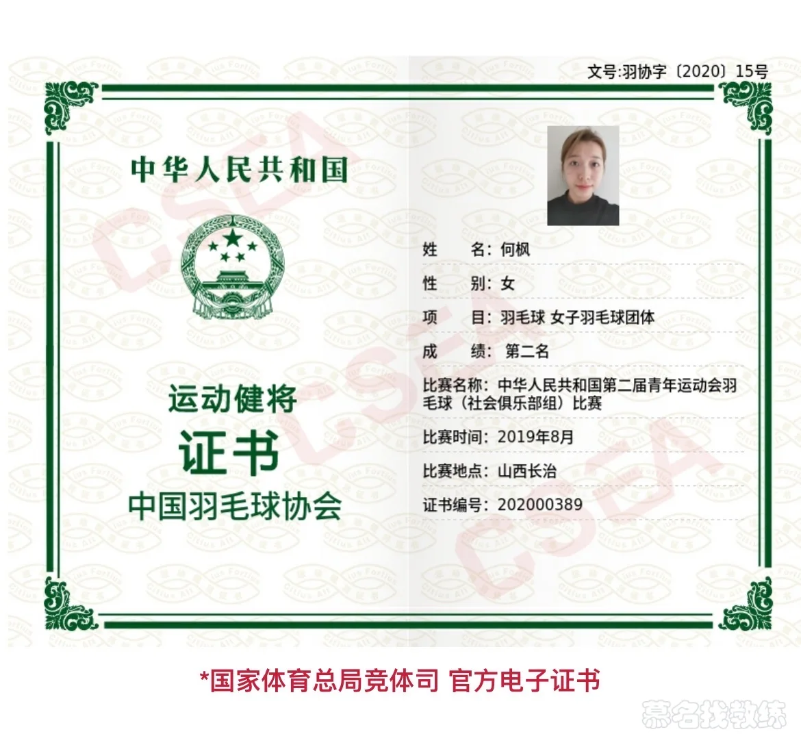 羽毛球 7年教龄 运动健将