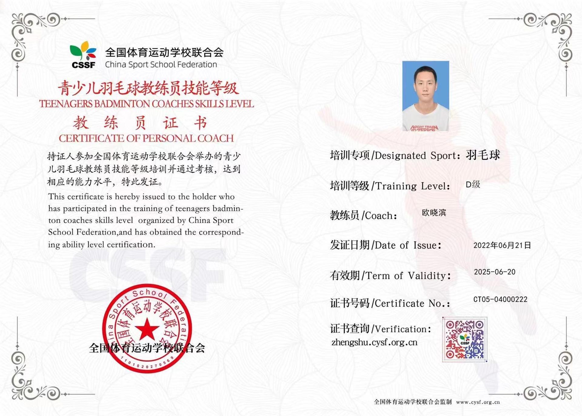 欧晓滨——广州羽毛球教练