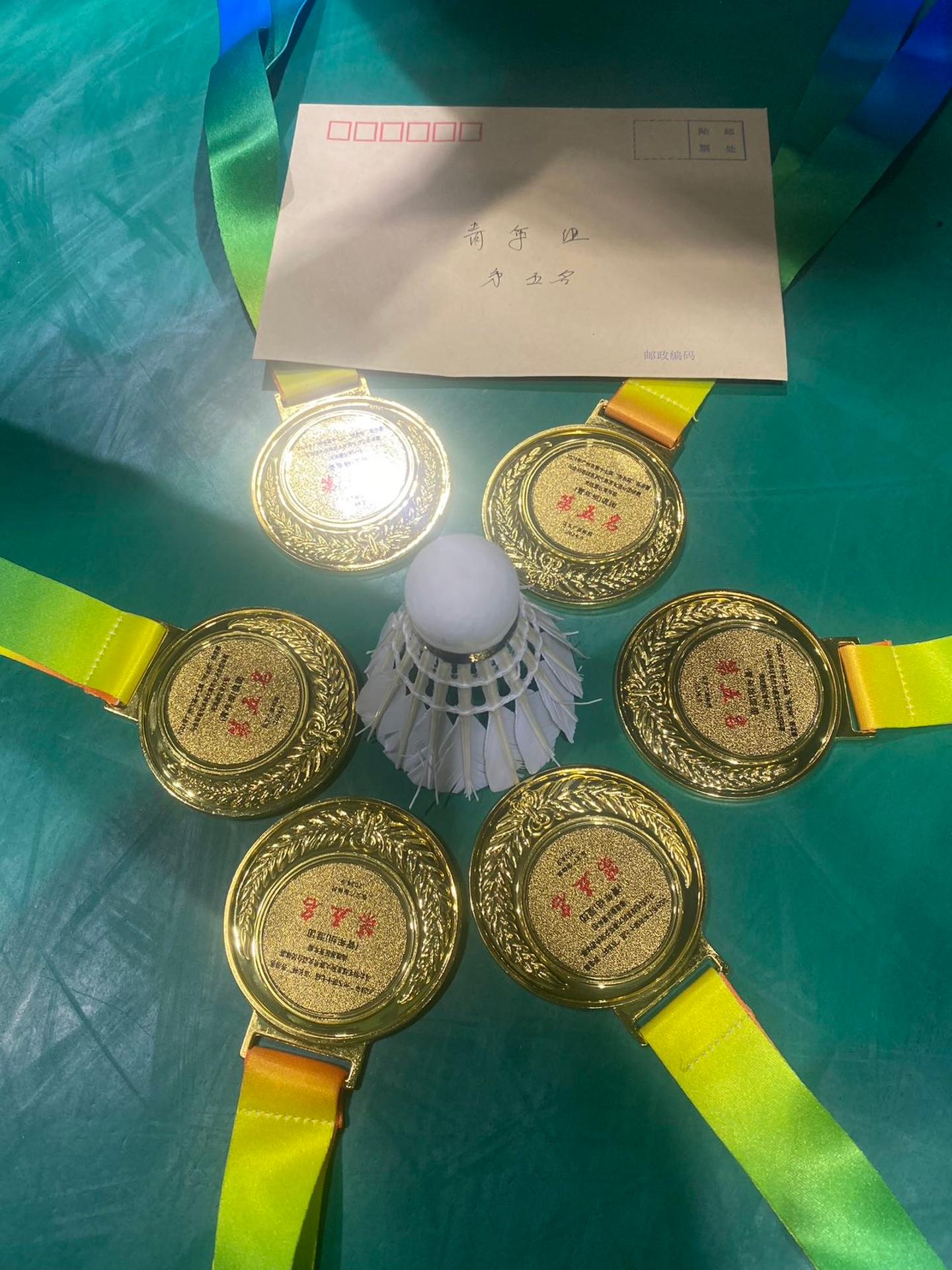 2024市长杯海珠赛区青年团体第五、2023市长杯增城赛区青年团体第八、大学单打冠军、省大运会十六强等。 各大比赛奖牌 2024市长杯青年团体第五 市长杯合照