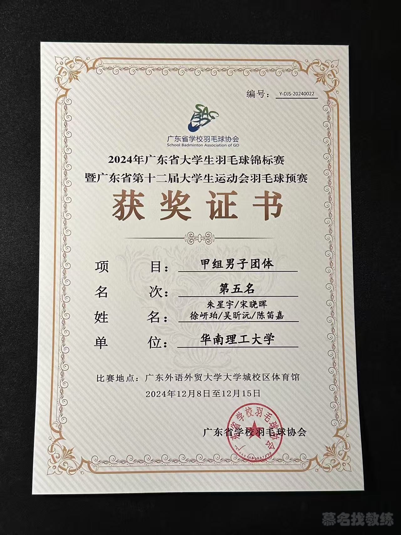 华南理工大学校队成员 2023年广东省学校羽毛球联赛亚军🥈 2023年华南理工大学个人赛男单亚军🥈 2024年华南理工大学院际赛亚军🥈 2024华南理工大学个人赛男单冠军🥇 2024年广东省大学生羽毛球锦标赛团体第五 2024年广东省大学生羽毛球锦标赛第五 2023年华南理工大学“金阳光”备男单亚军 2024年华南理工大学“金阳光”备男单冠军 2023年广东省学校羽毛球联赛亚军 2024年华南理工大学羽毛球学院团体赛亚军