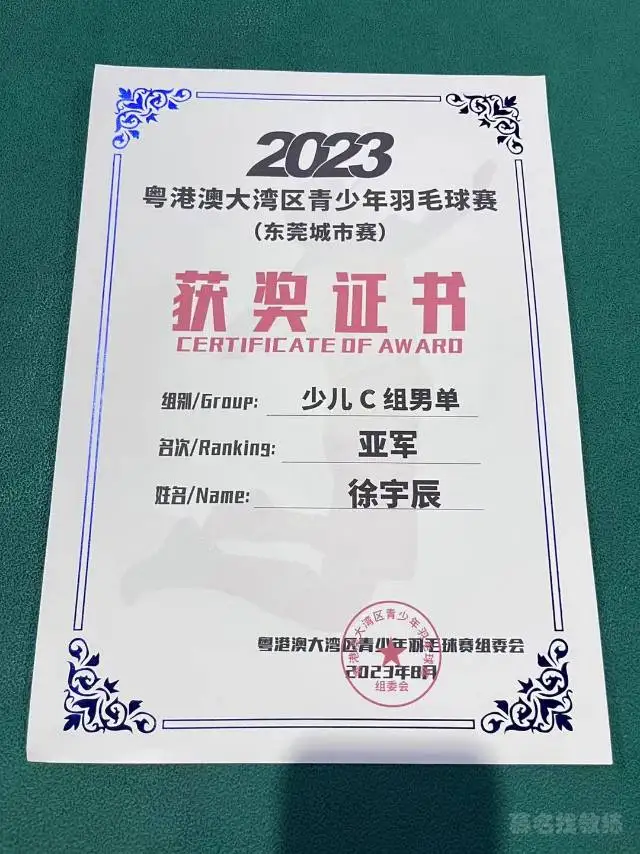 2023粤港澳大湾区青少年羽毛球赛 少儿C组亚军