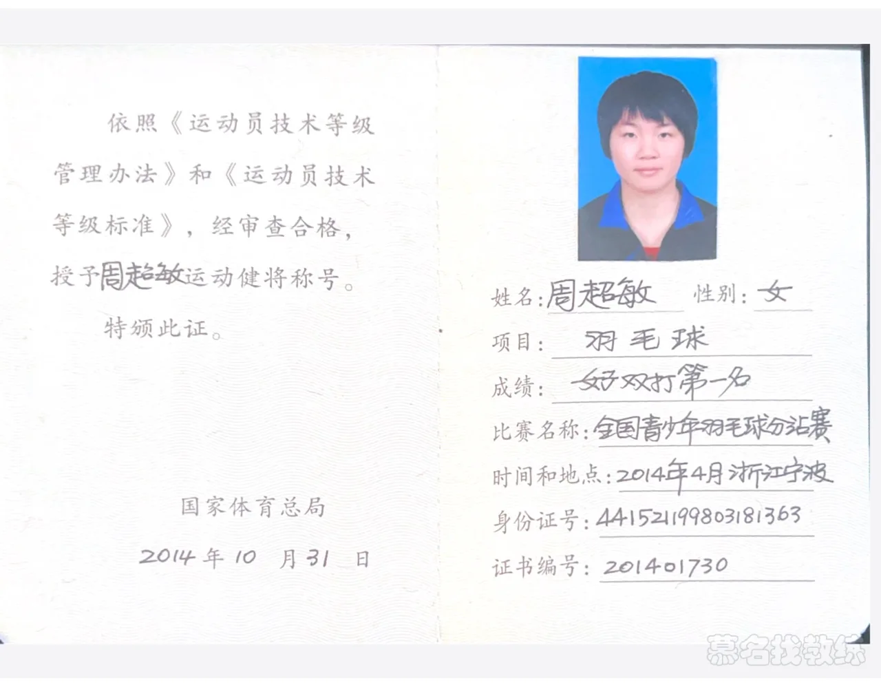 羽毛球 6年教龄 运动健将