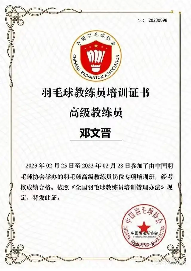 邓文晋 - 广州羽毛球教练
