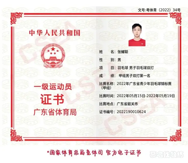 2022年广东省羽毛球锦标赛团体第一名,男子双打第一名