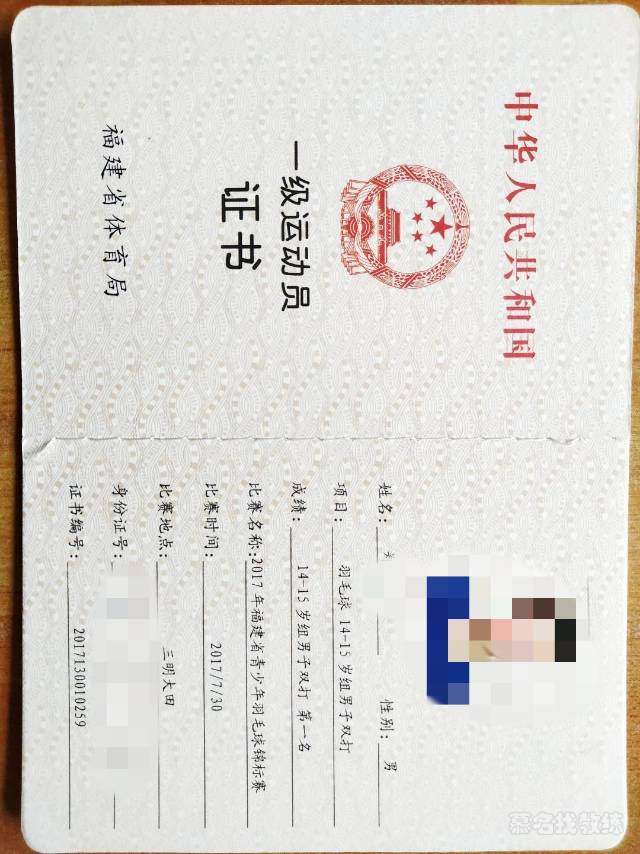 羽毛球 6年教龄 一级运动员