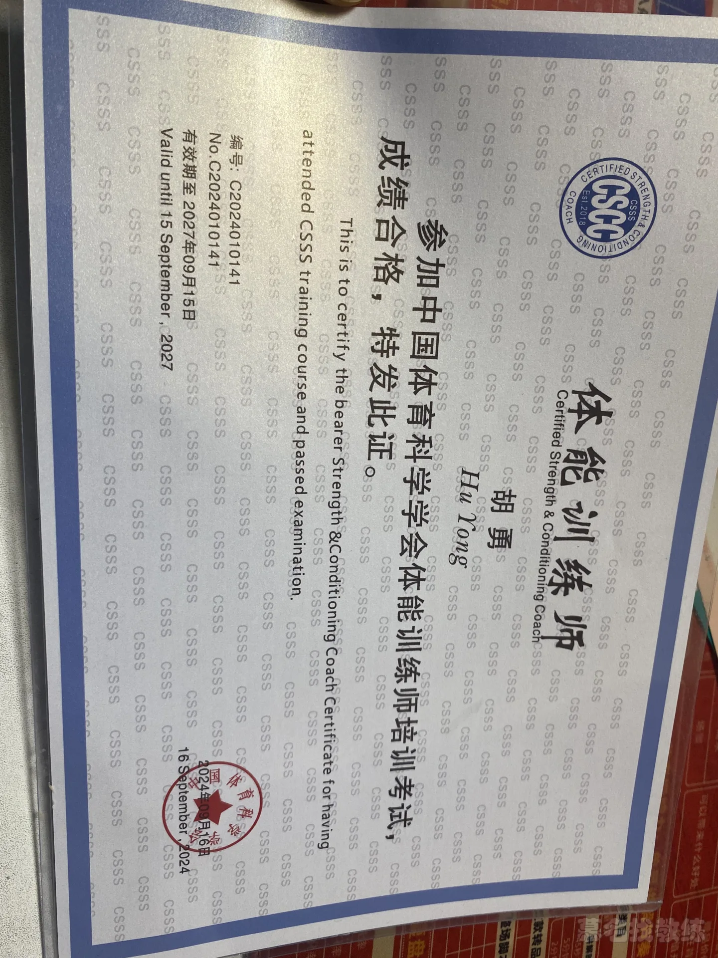 ・中国体育科学学会认证教练