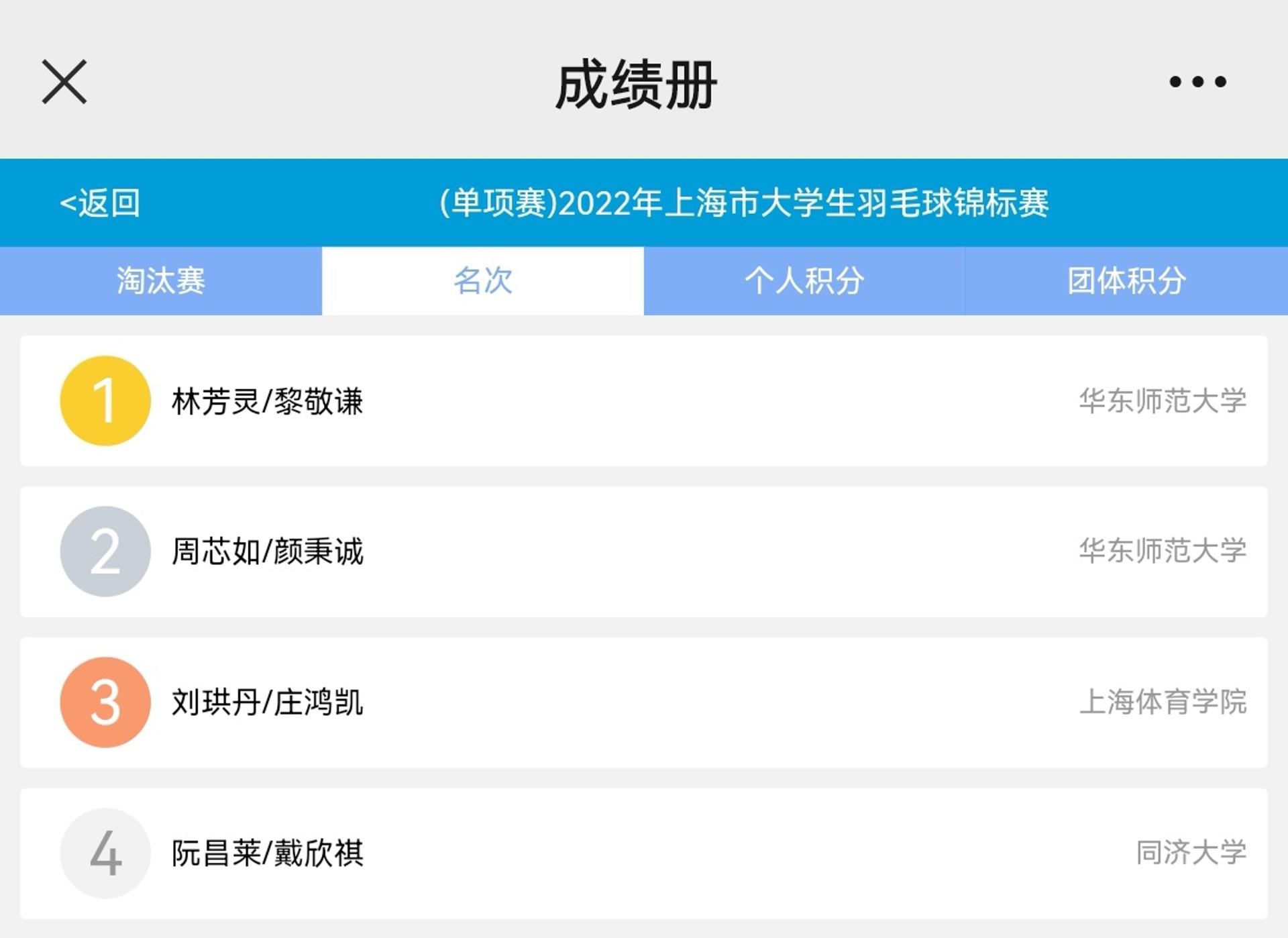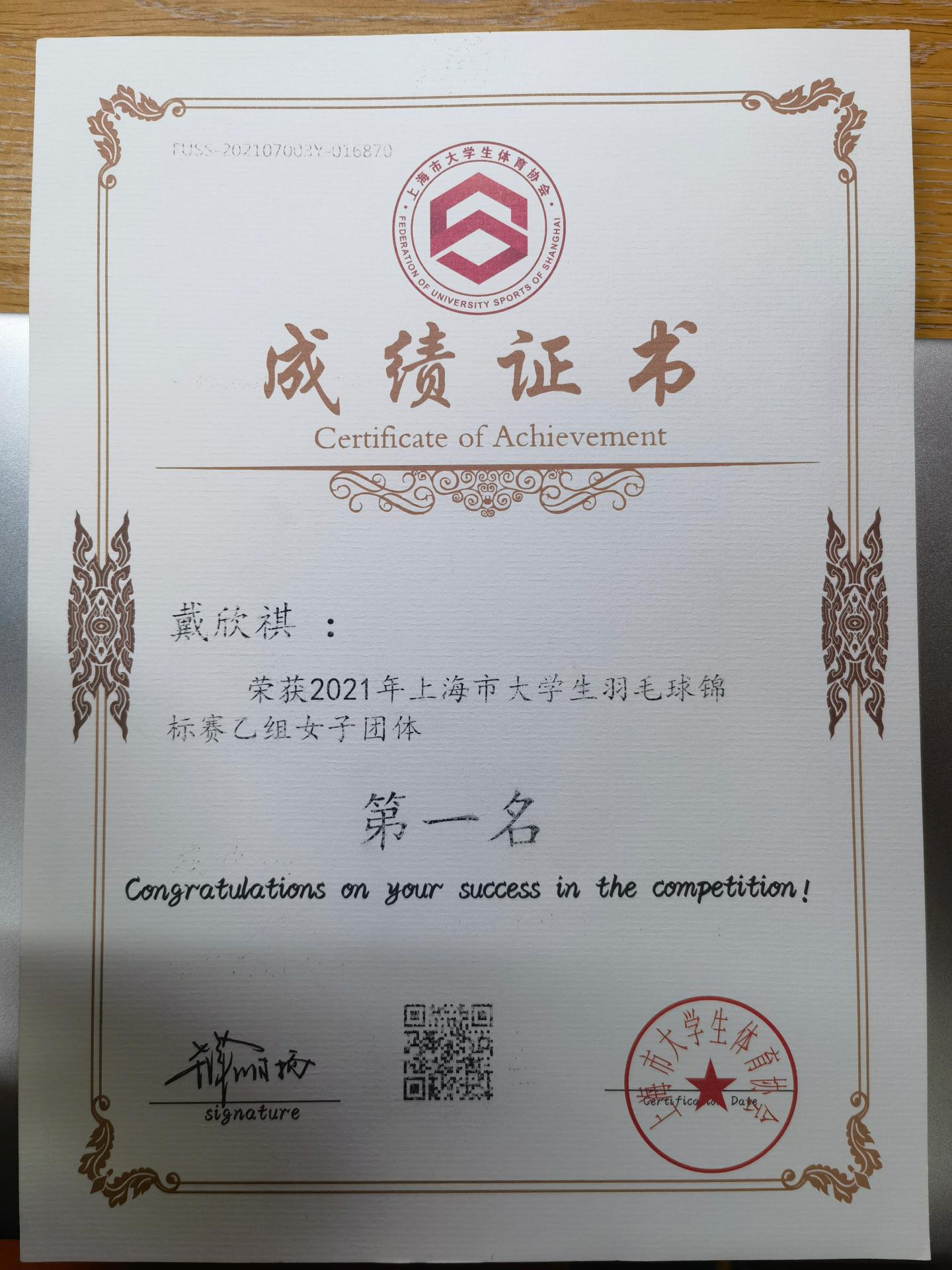 上海市大学生羽毛球锦标赛女团冠军 上海市市运会混双第四
