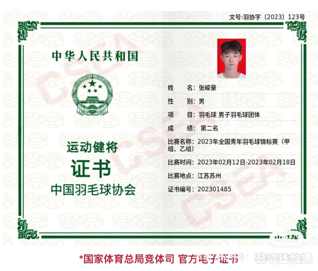 羽毛球国家级健将