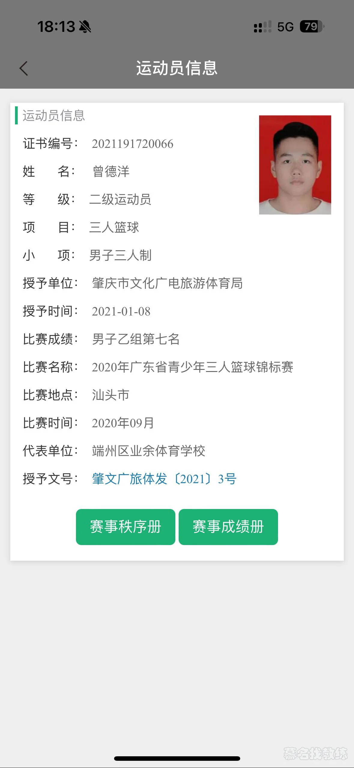 国家二级篮球运动员 曾任肇庆篮球青年队队长