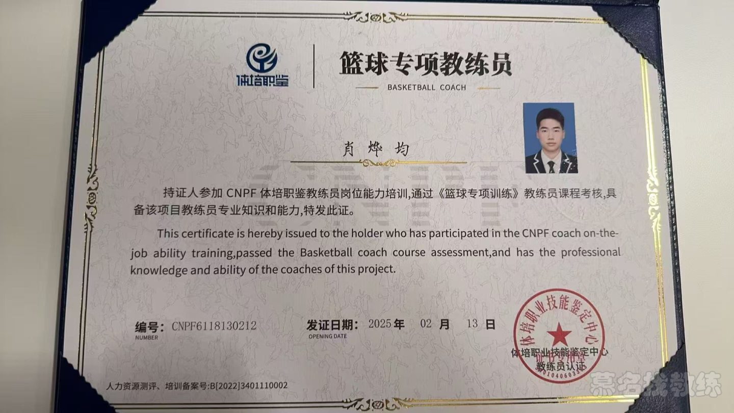 姓名:肖烨均 籍贯:广东深圳 教学经历:2016年接触篮球系统性训练,2021年成为教练,有四年以上的篮球教学经验 累计服务学生:300-500名学生 擅长领域:运动训练 篮球专项 运动康复 课程模式:1对1,1对2,小班课(4~-6人)等实际可开展课程模式 课程流程:如少儿课程分入门教练(10课时),初级提升教学,中级进阶教学(20课时),高级突破教学;成人入门教学(6课时),成人陪练等 培训对象:少儿,青少年 训练时间:双方协调 训练地点:上门服务/地点灵活 常驻训练场地:双方协调 训练装备:双方协调