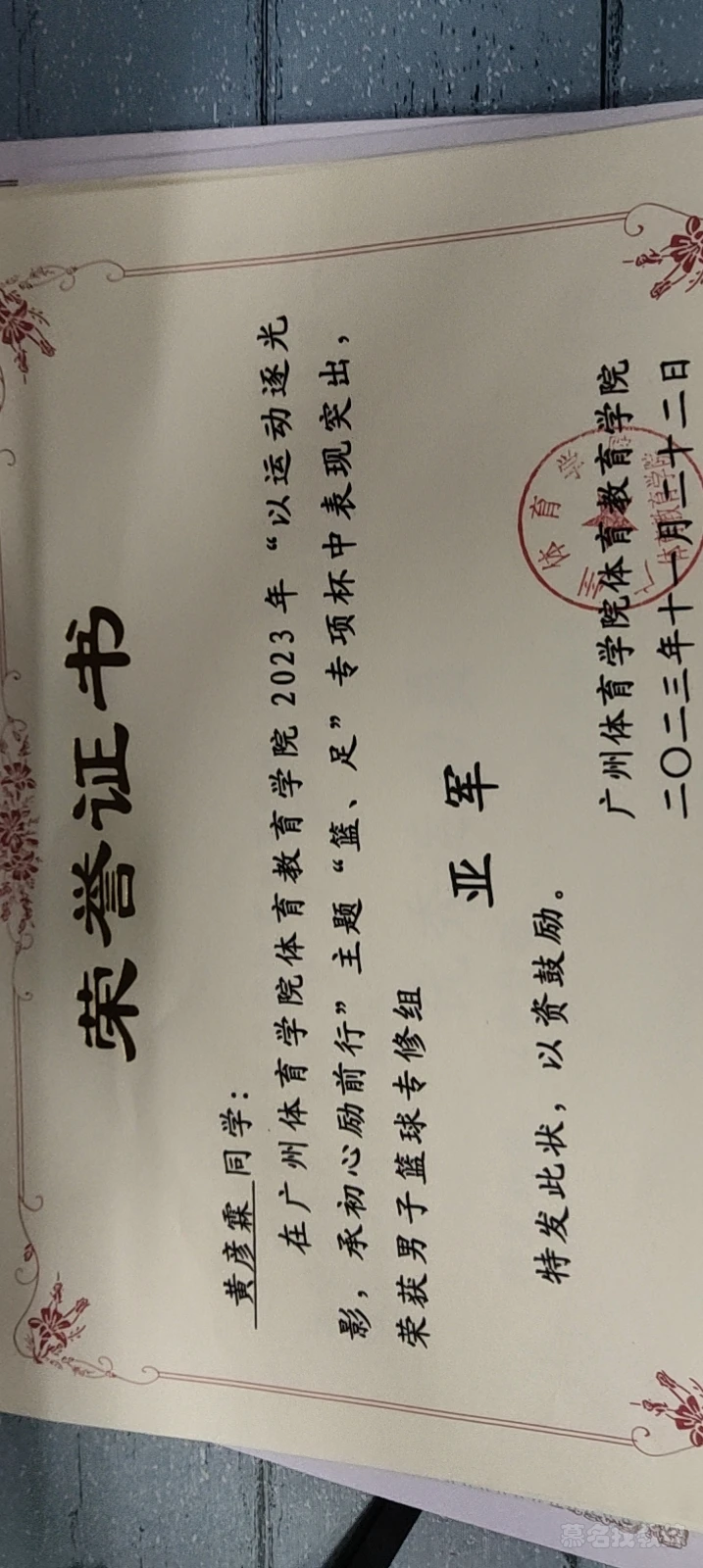 广州体育学院篮球专项杯亚军