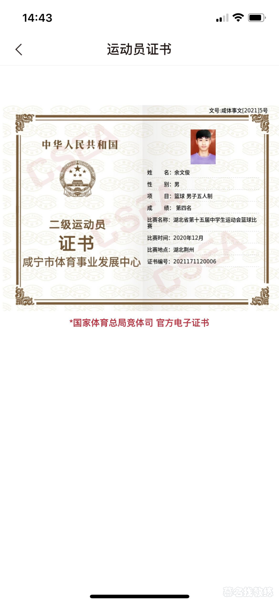 1. 2020年湖北省第十五届中学生运动会获得第四名 2.2021年成为篮球二级运动员 3.2022年成为教练员 4.2024年成为篮球国家一级裁判