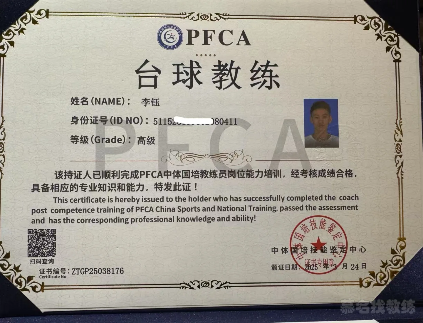 国家级高级台球教练