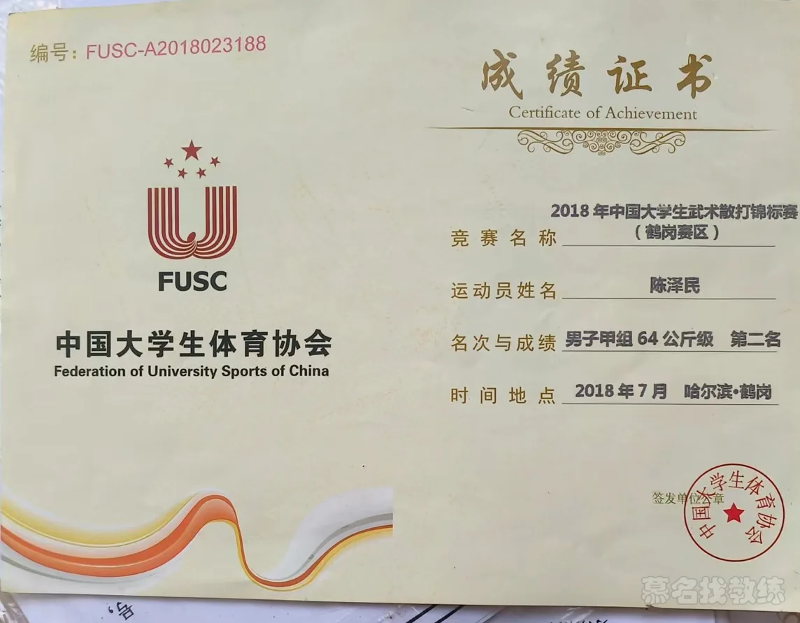 1:2018年青少年散打锦标赛亚军