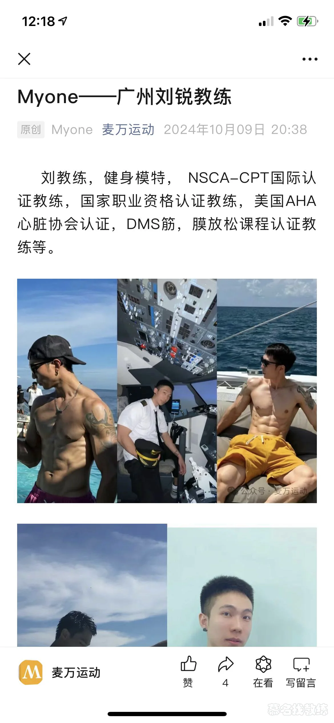 健身模特ON奥普帝蒙签约运动员NSCA-CPT国际认证教练国家职业资格认证教练美国AHA心脏协会认证DMS筋膜放松课程认证教练等