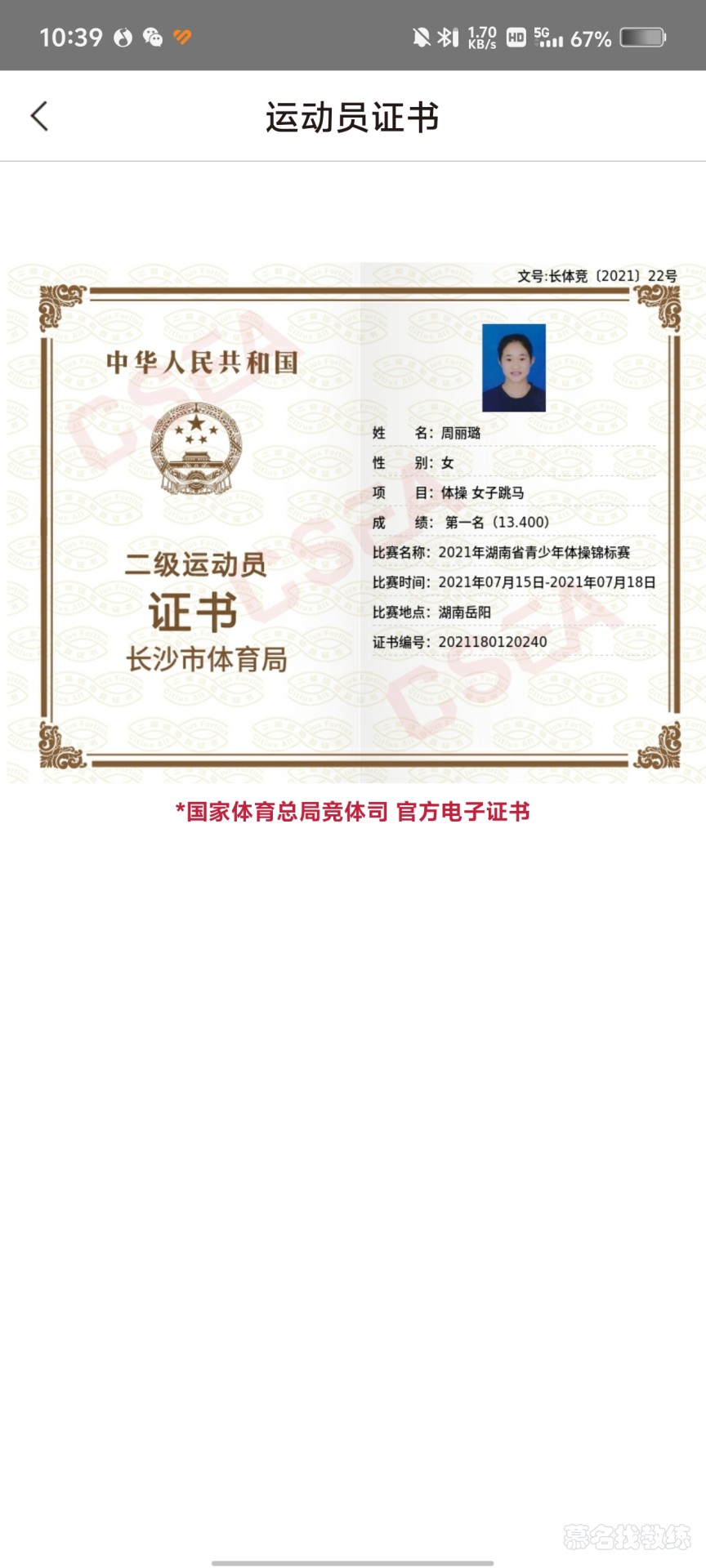 健身 3年教龄 二级运动员