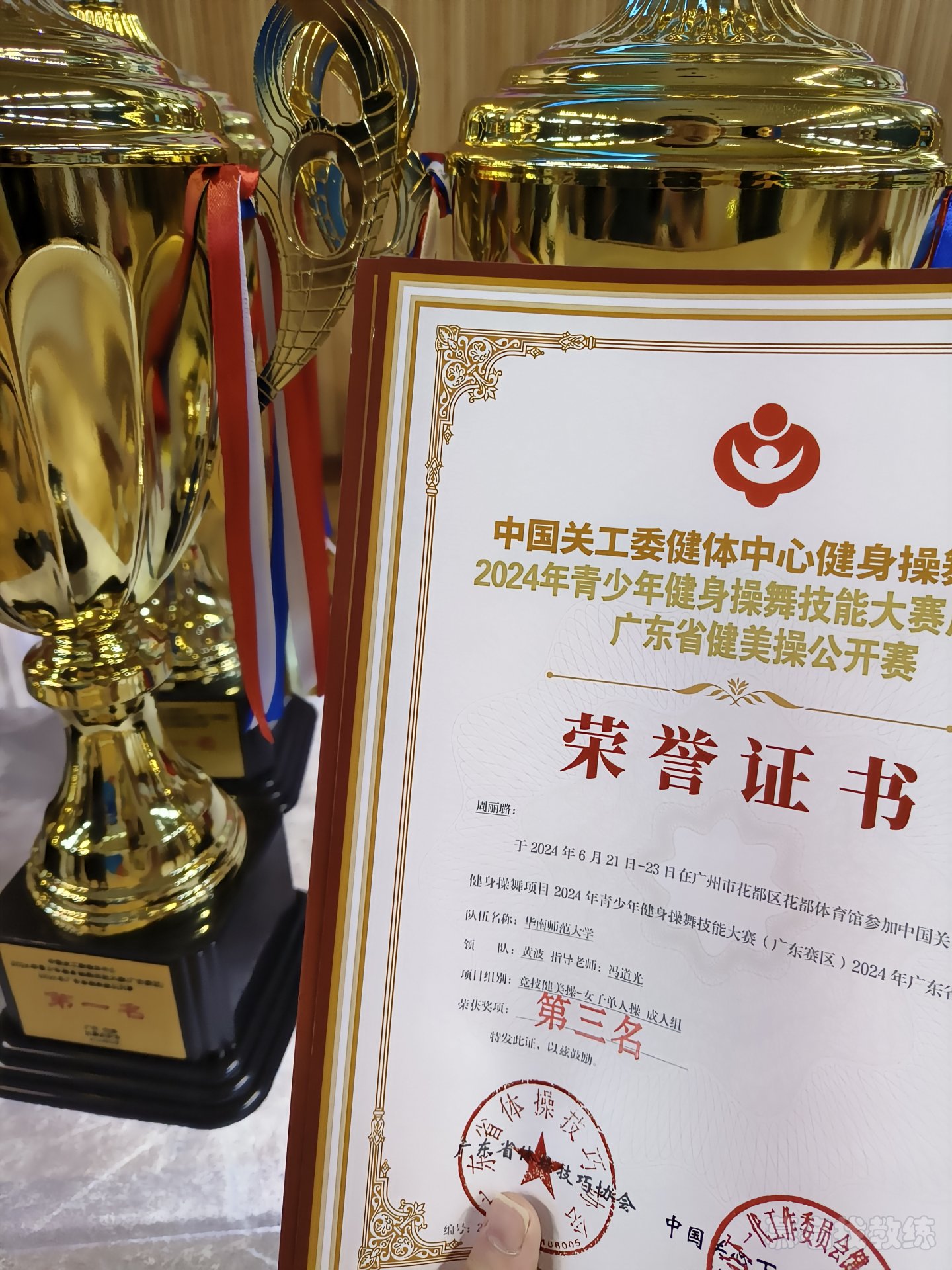 获得2023年广东省健美操啦啦操比赛三人操第一名,有氧舞蹈第一名的好成绩。国家二级运动员。 广东省健美操比赛女单第三名