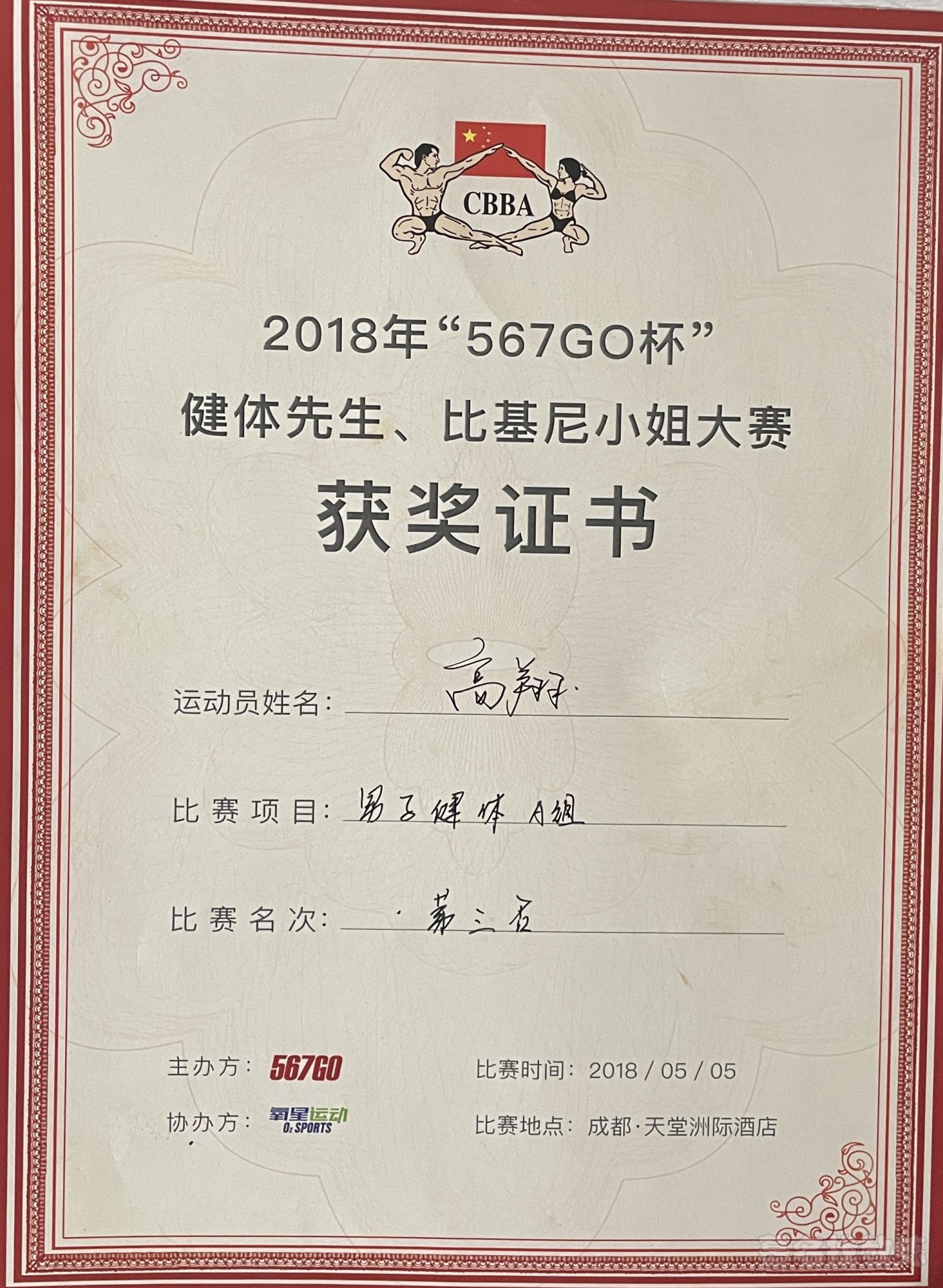 1️⃣2017 china fit 成都站 健体 B 组季军🥉 2️⃣2018-4台湾肌能系贴扎认证 3️⃣2023-4美国国家运动医学会—CPT 认证 2018CBBA china fit 健体 B 组季军🥉