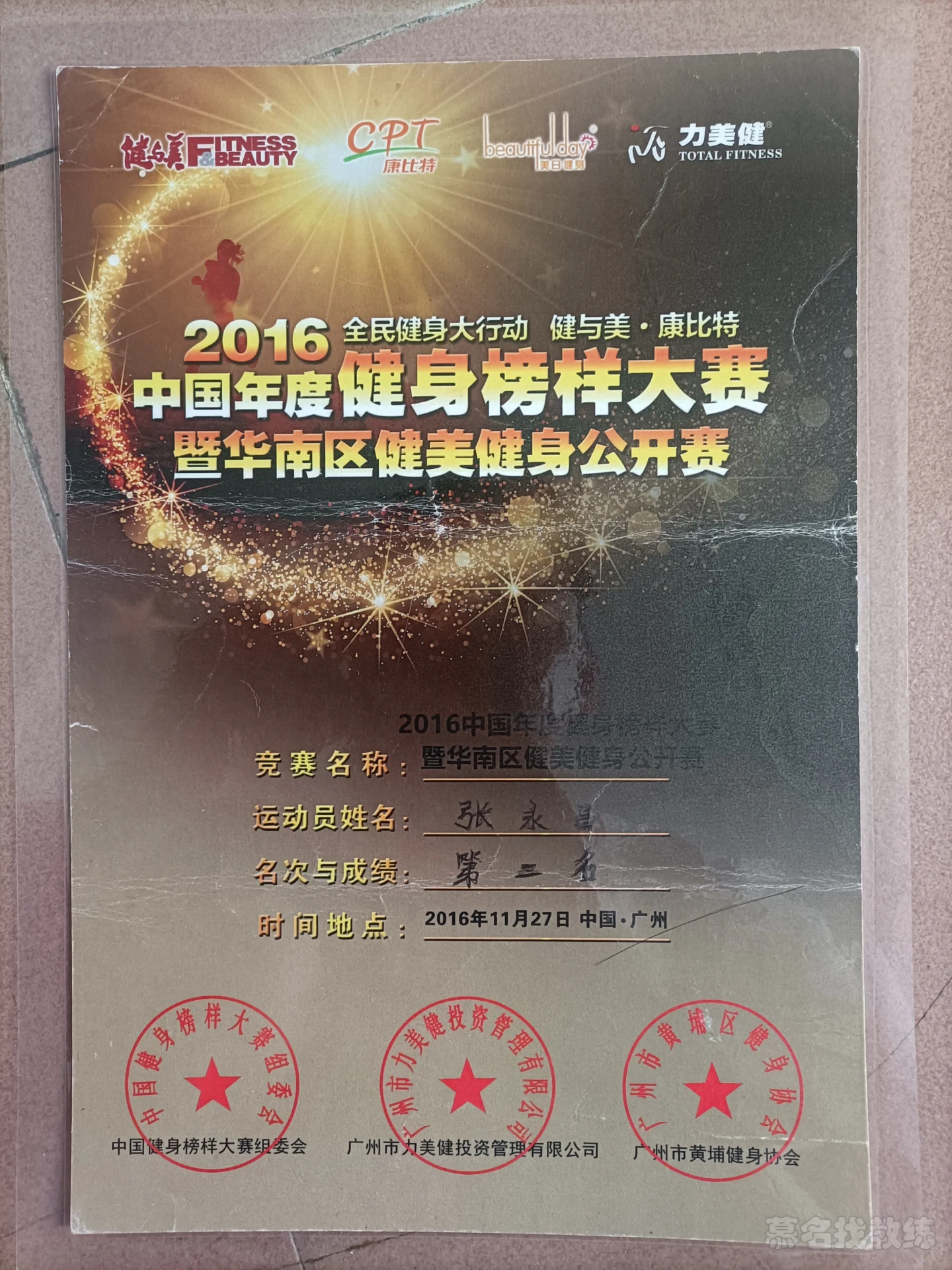 广东省健身健美大赛塑形者健体先生第四名