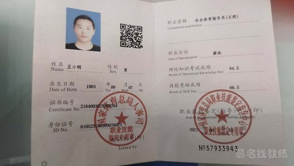 姓名:王小明 籍贯:陕西 教学经历:2005年接触健身,2006年成为游泳教练,健身教练游泳教练证件都有 累计服务学生:游泳3000多人,健身私教人2600多人 擅长领域:减脂塑形,产后恢复,增肌提高免疫力,运动康复,蛙泳,自由泳,仰泳,蝶泳 课程模式:1对1,1对2,小班课(4~6人)等实际可开展课程模式游泳健身都可以。 课程流程:如少儿课程分入门教练(10课时),初级提升教学,中级进阶教学(20课时),高级突破教学;成人入门教学(6课时),成人陪练 培训对象:8到70岁男女少年中年老年人群 训练时间:双方协调 训练地点:上门服务/地点灵活 常驻训练场地:宝安,南山,福田,罗湖 训练装备:双方自由协商