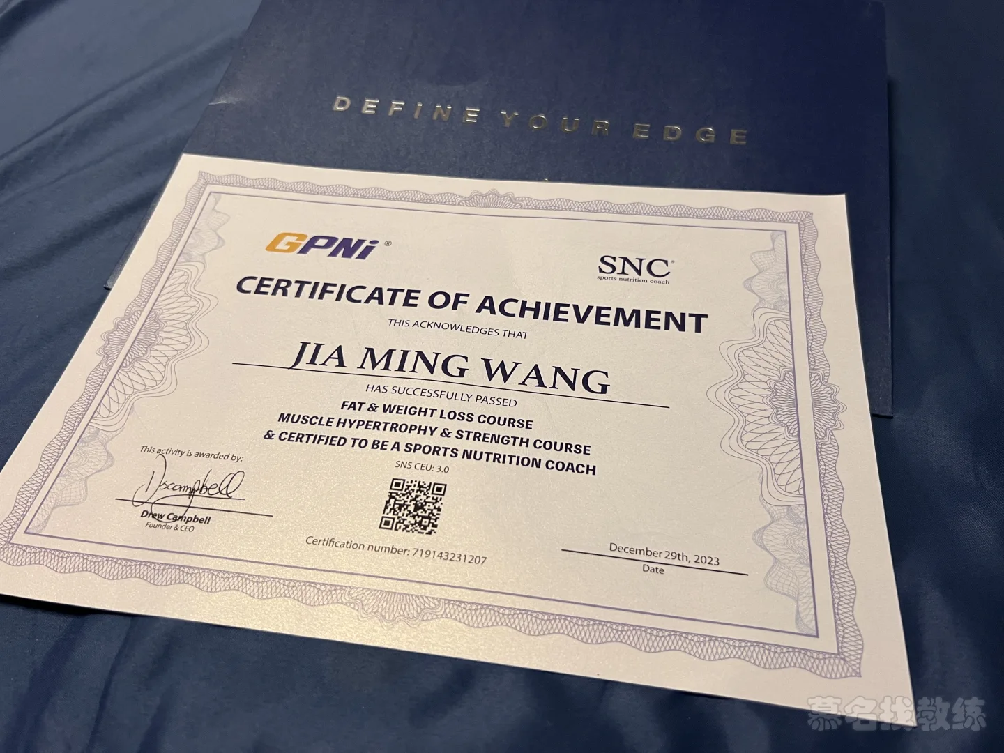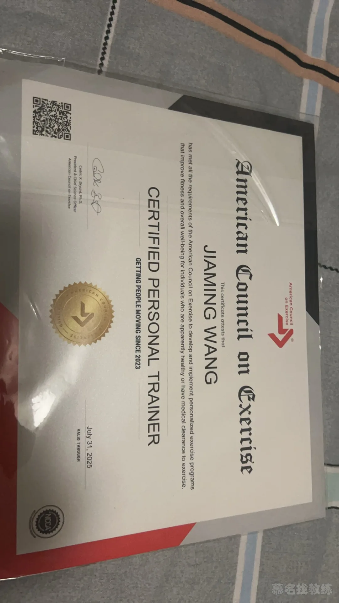 持有ACE-CPT私教证,SNC运动营养教练证,AHA急救证。