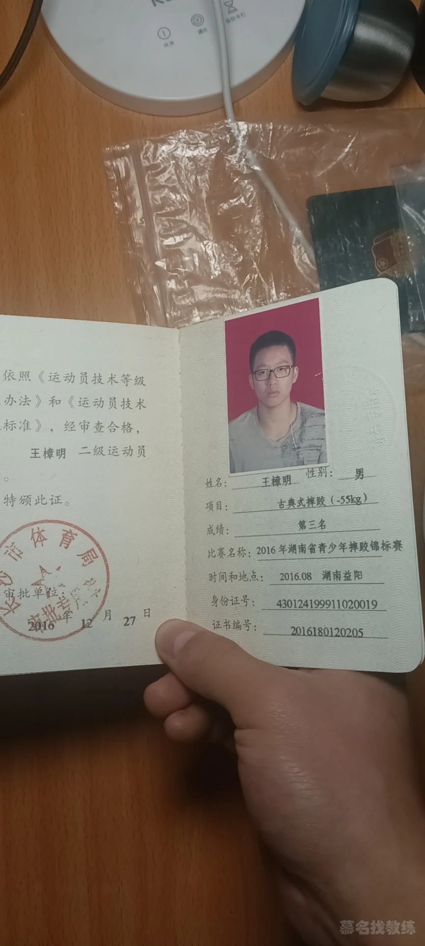 1.2016年湖南省青少年摔跤竞标赛第三名