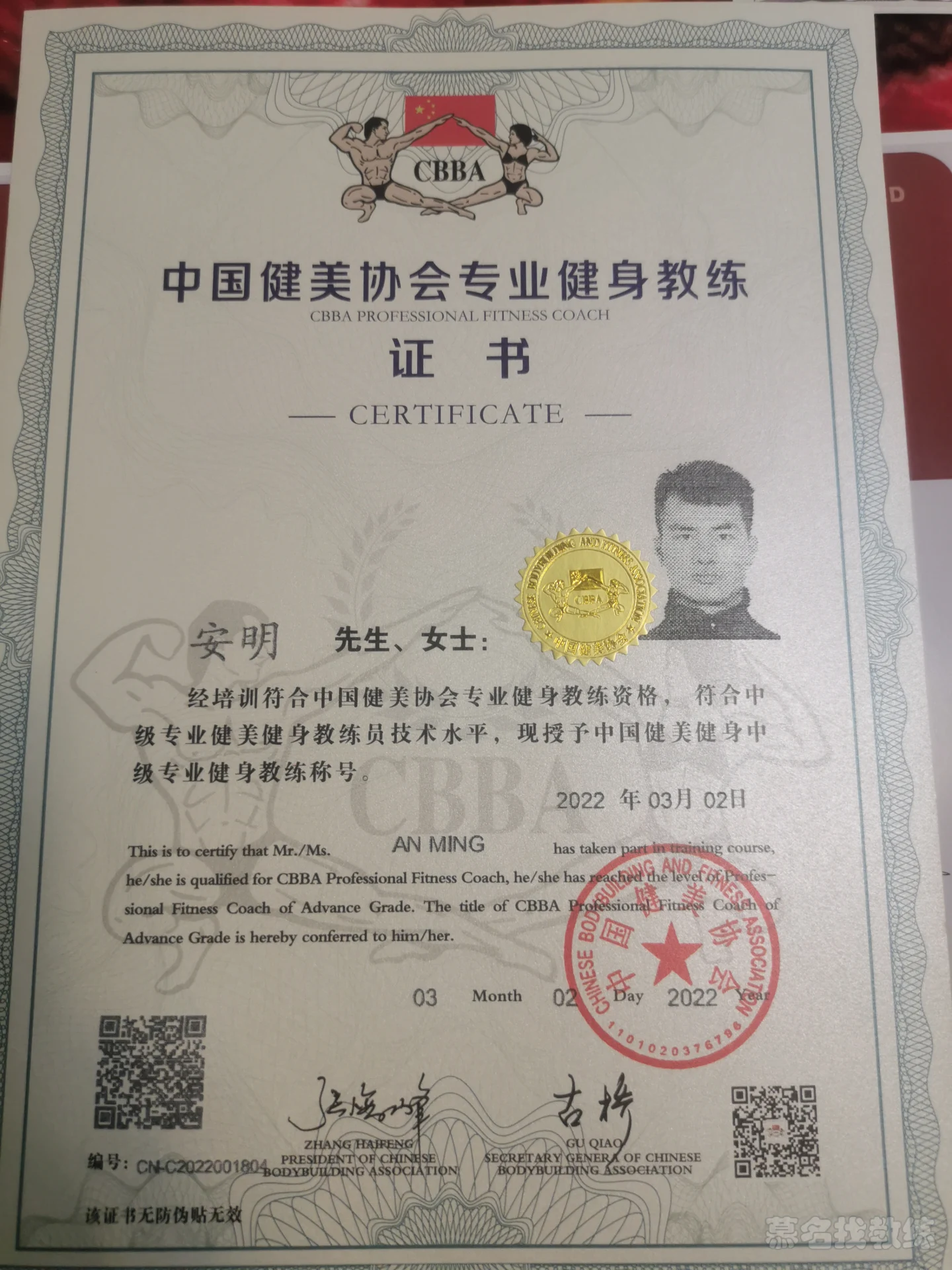 CBBA中国健美协会专业健身教练认证