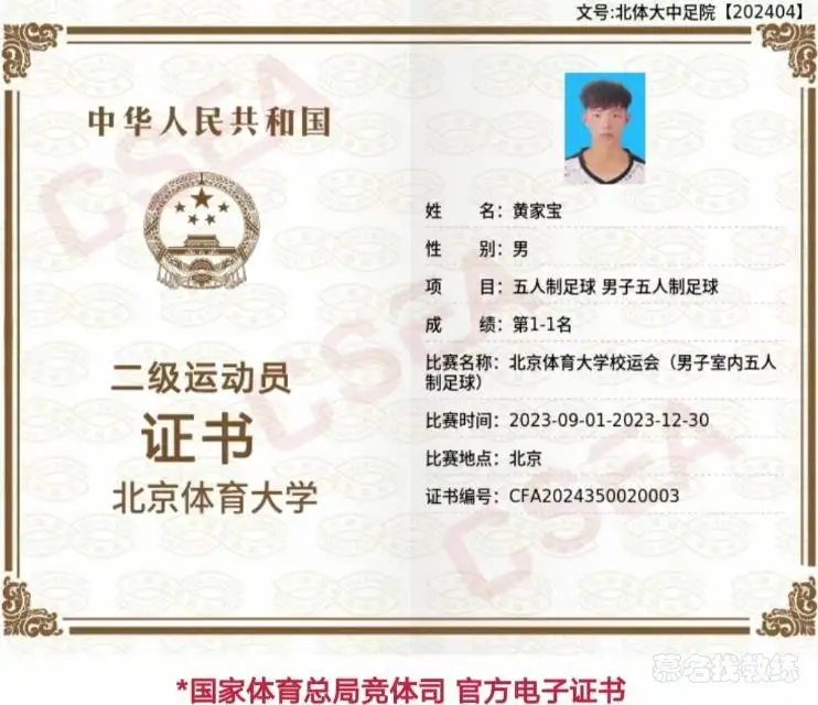 足球 4年教龄 二级运动员