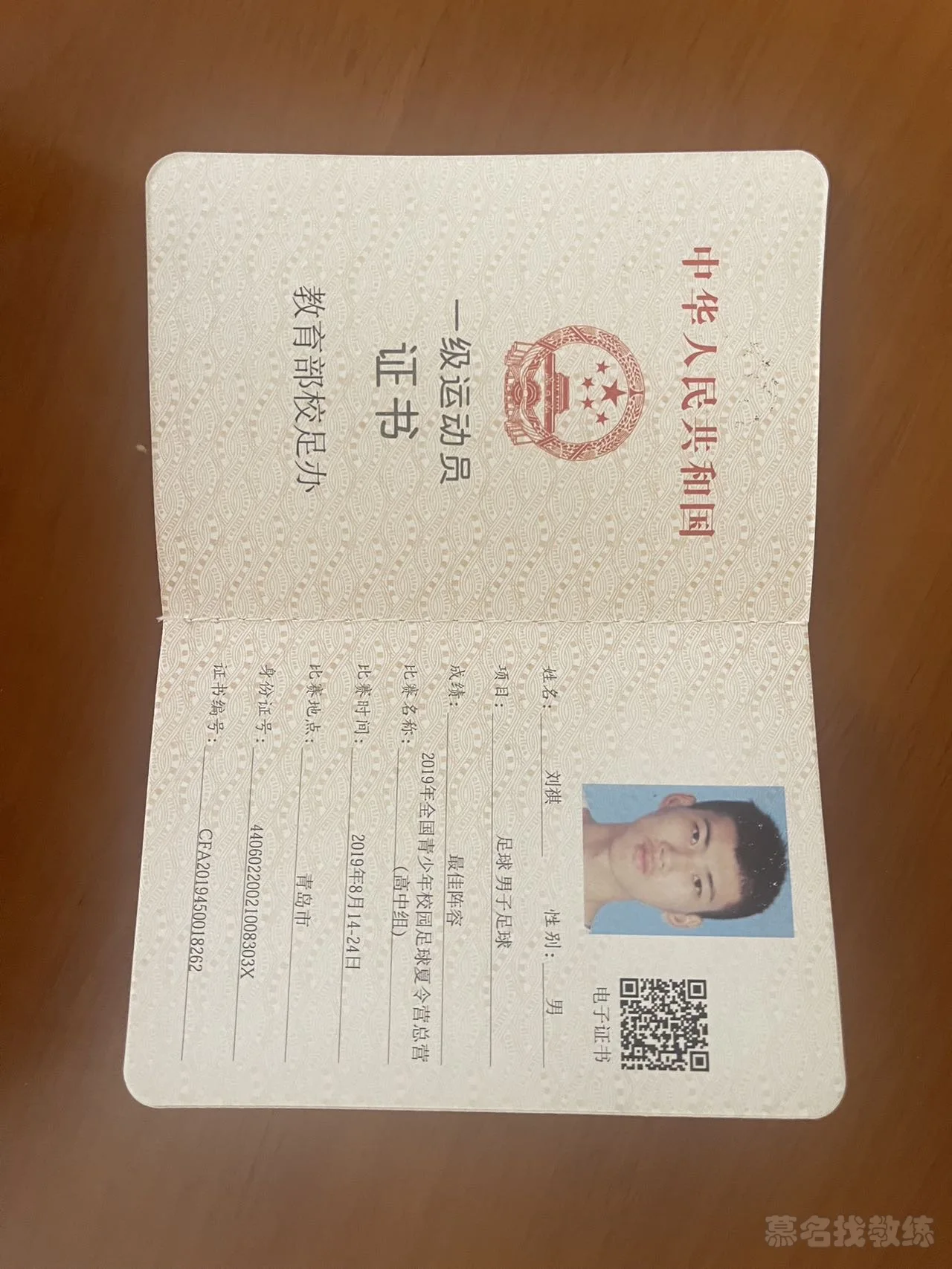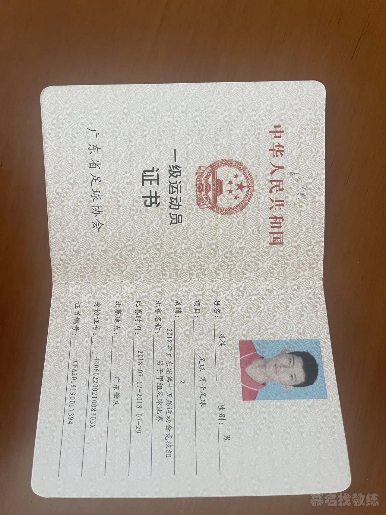 足球 5年教龄 一级运动员
