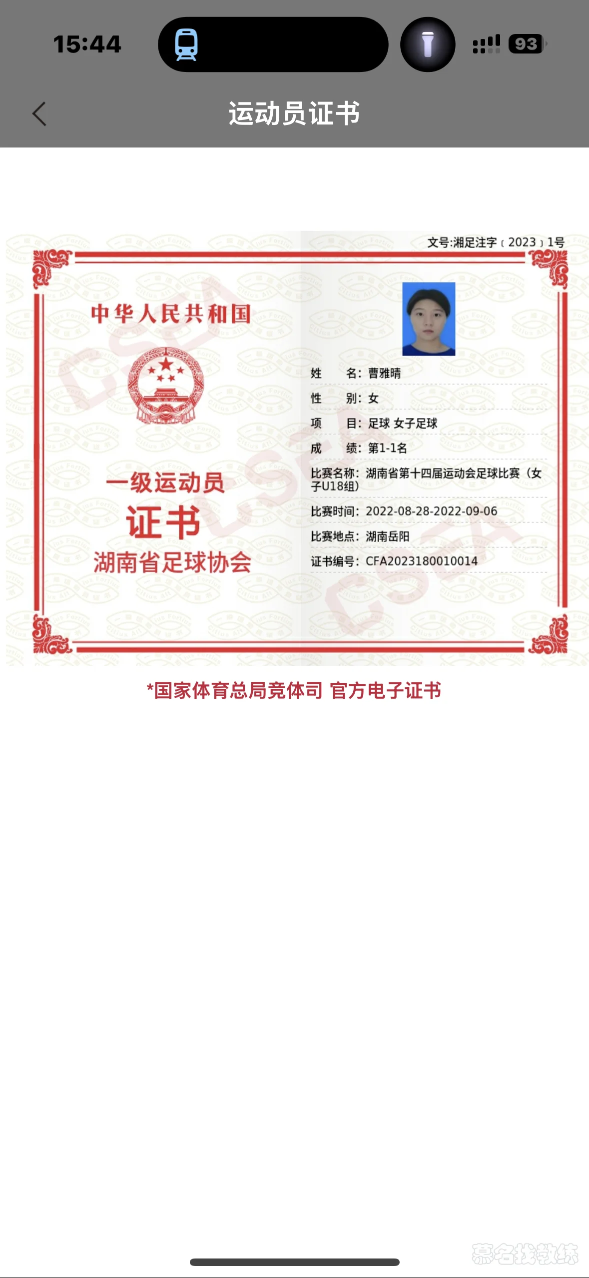 2023年获得国家三级足球裁判