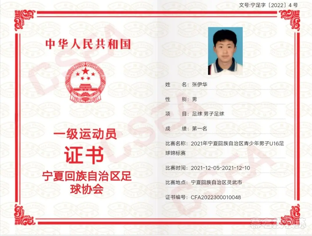 证书: 足球国家一级运动员