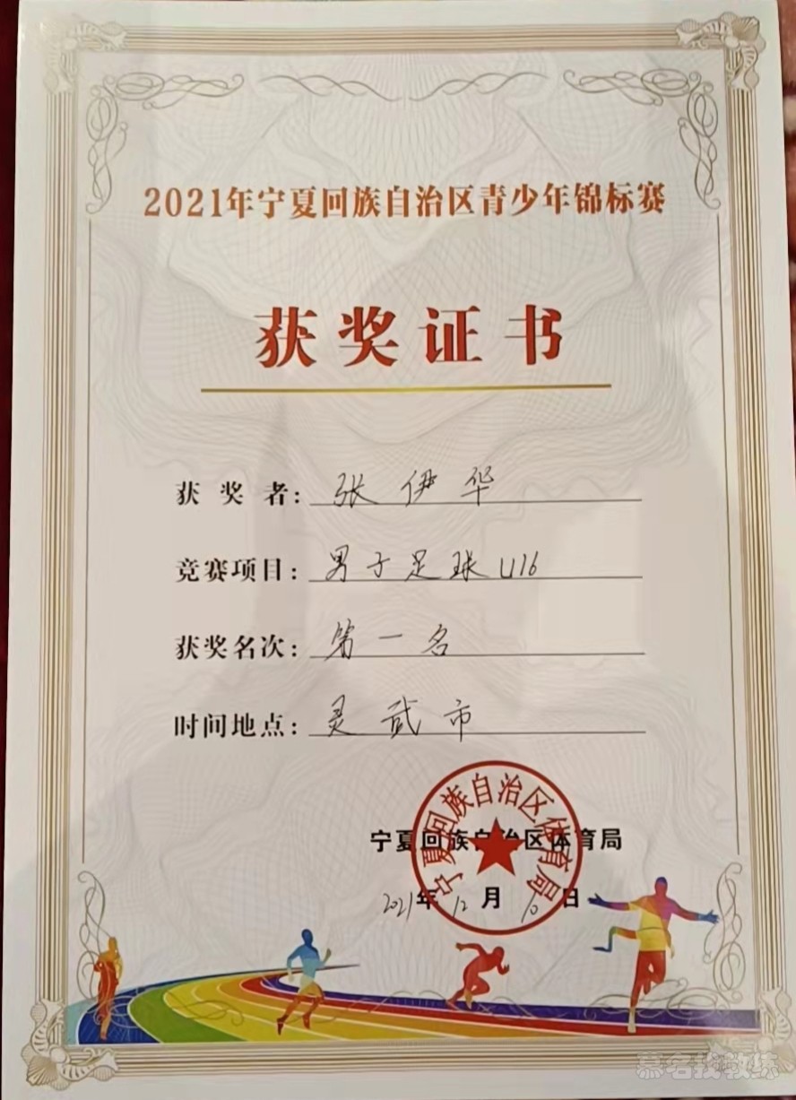 1. 2021宁夏回族自治区锦标赛第一名 2. 2021沿黄杯足球联赛第二名 3. 2020宁夏回族自治区锦标赛第二名 4. 宁夏回族自治区校园足球联赛第四名 5. 第一届中国青少年足球联赛第六名 6. 2019青超联赛第八名 7.2022年宁夏回族自治区省运会 2021宁夏回族自治区锦标赛冠军