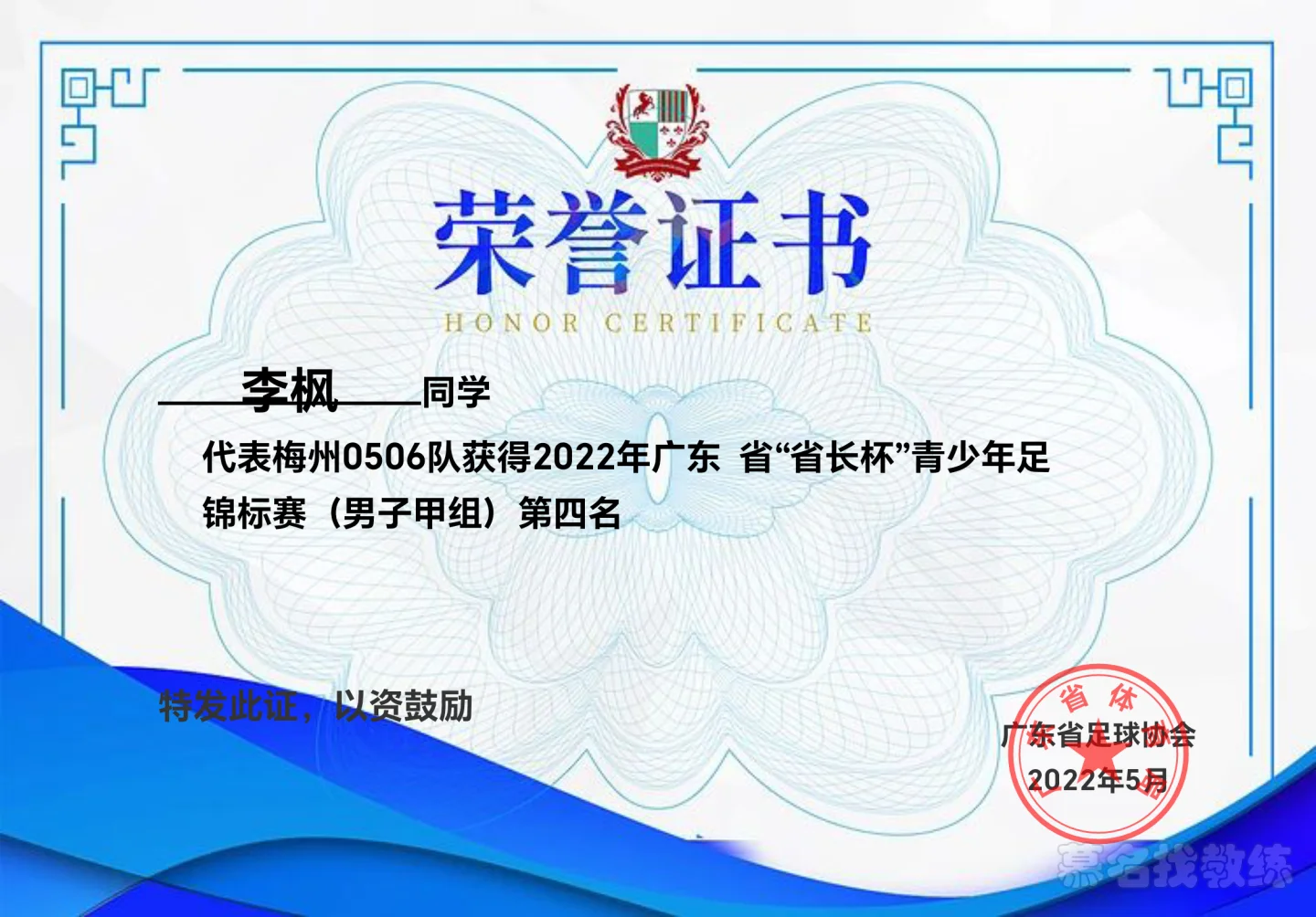 国家二级运动员 广东e级足球教练员