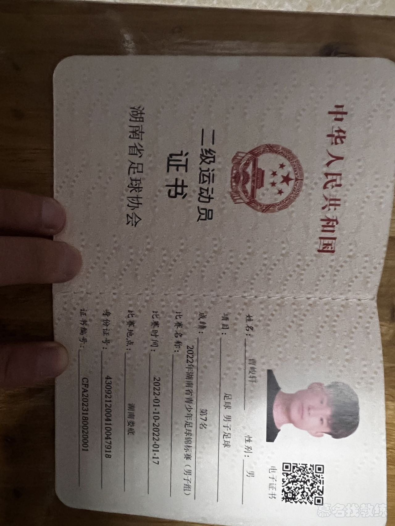 足球 3年教龄 二级运动员