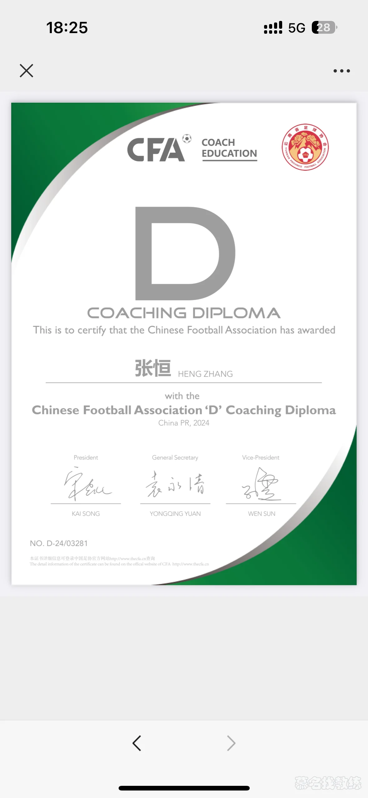 教学经历:本人从初中就开始接触足球,其中也参加过种足球比赛,从2023持证上岗,现在持有云南丙级足球教练中国D级足球教练还有中国业余足球教练证