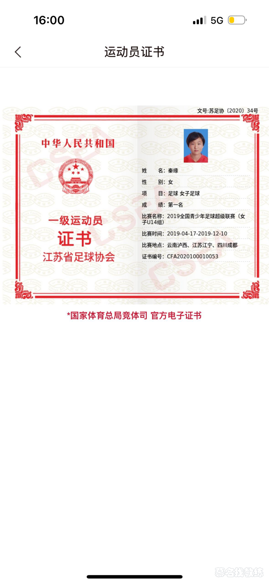 足球 1年教龄 一级运动员