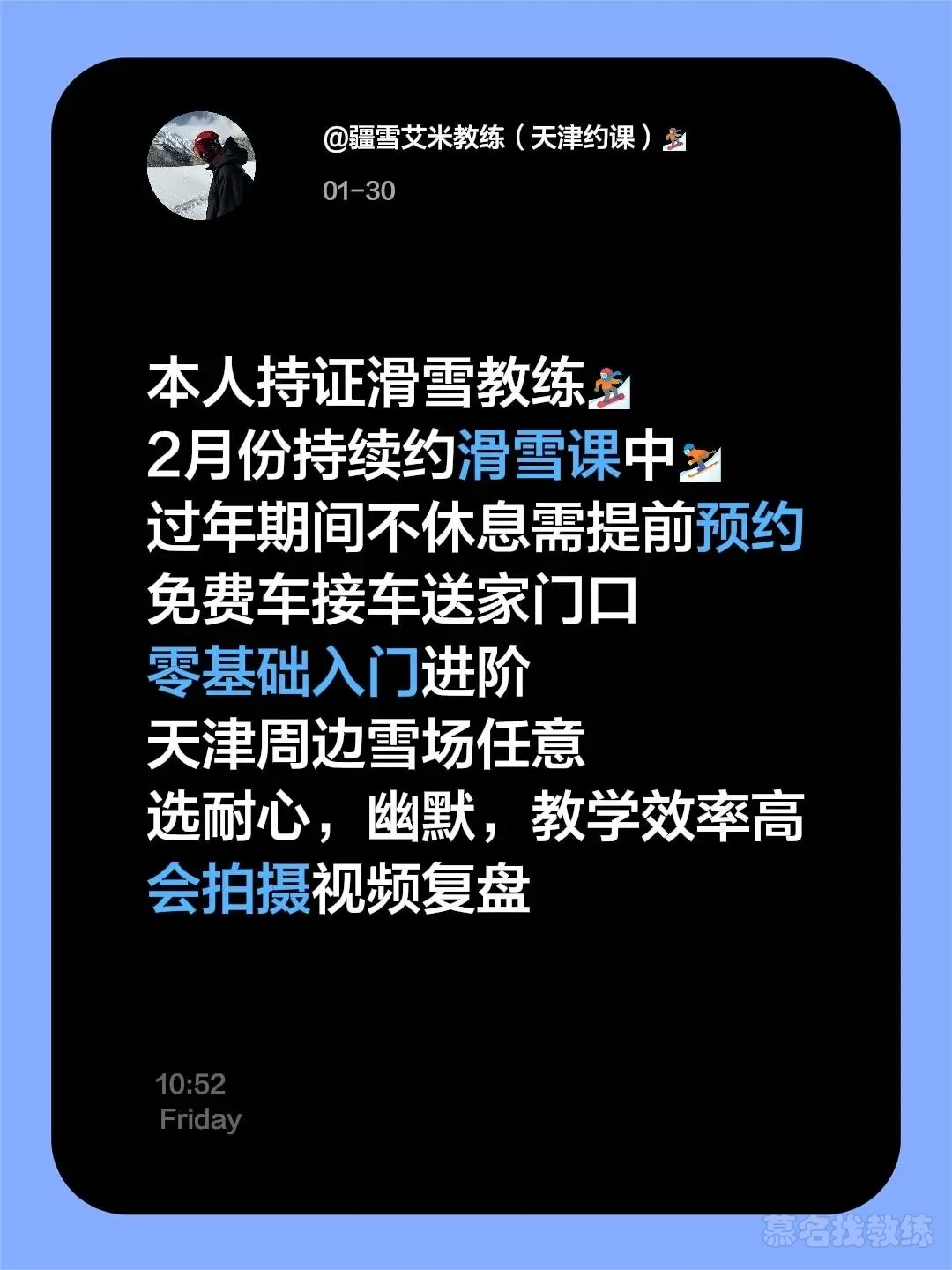 在天津教滑雪的新疆教练 从业10年有丰富的滑雪教学经验 有自己独特的教学模式🎿🏂 有🚗驱车往返雪场
