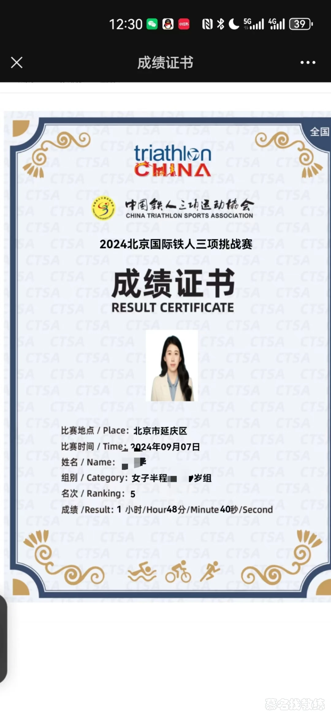 2.北京国际铁人半程第五名