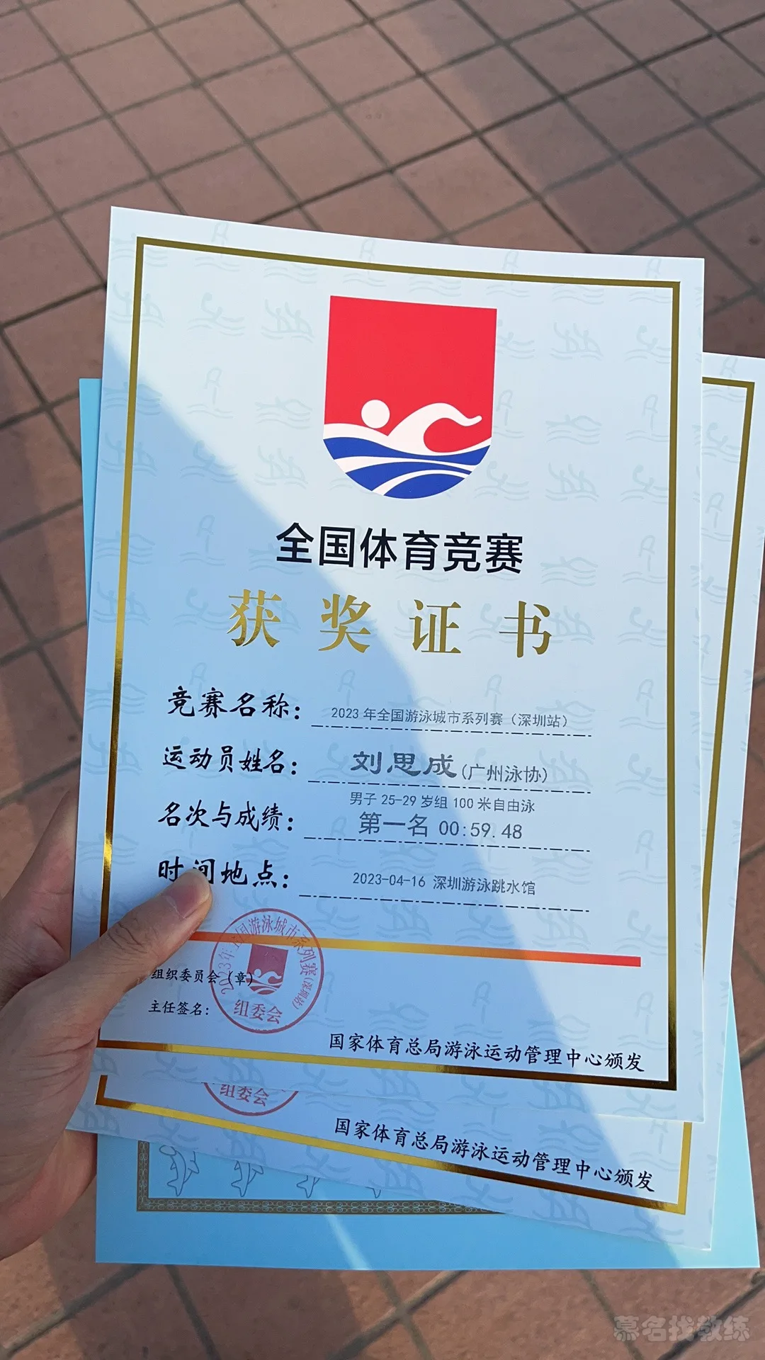 国家一级运动员、初级救生员、中级社会指导员、三证齐全经验丰富、接受长训班。2023年4月深圳比赛证书