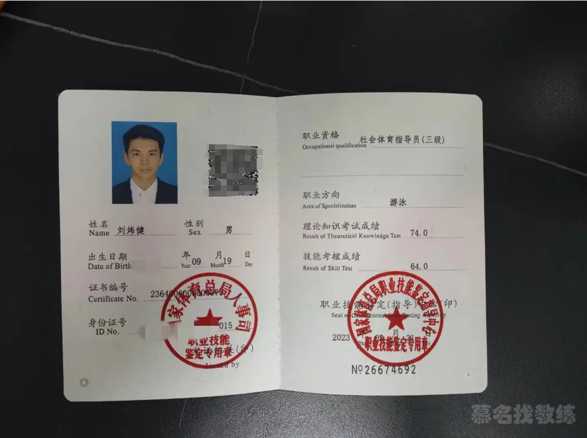 游泳 9年教龄 一级运动员