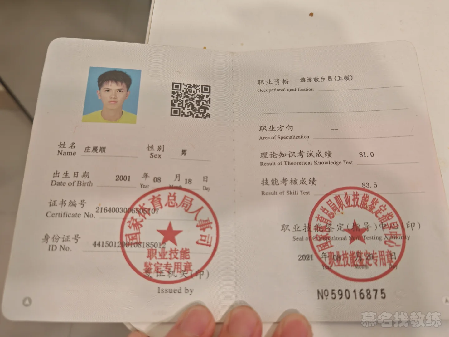 游泳教练证
