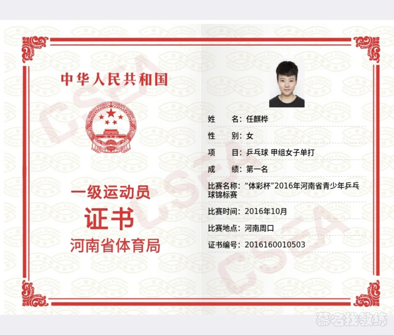 国家一级乒乓球运动员