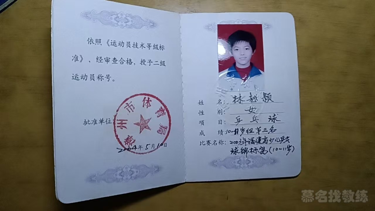 乒乓球 15年教龄 二级运动员