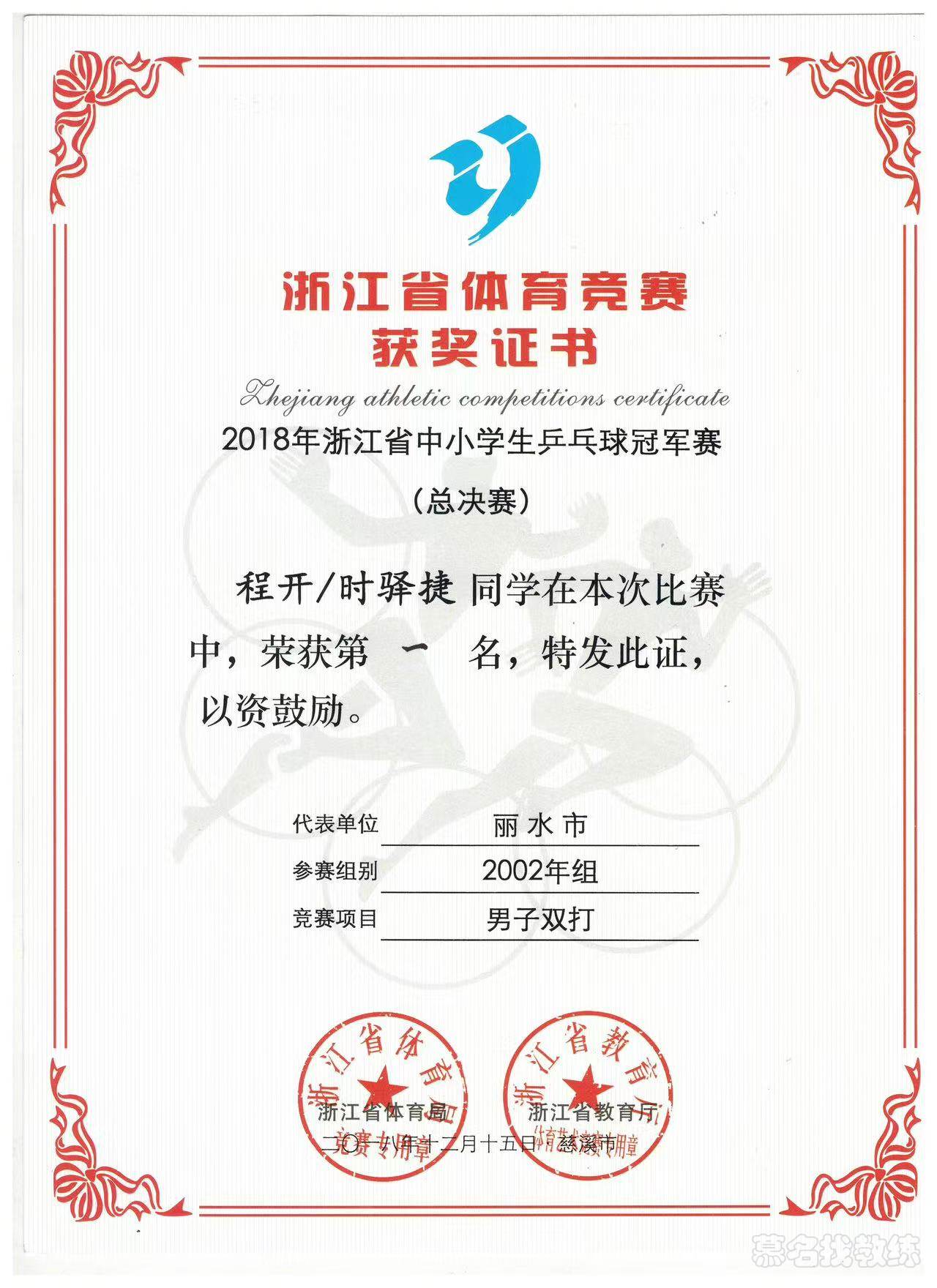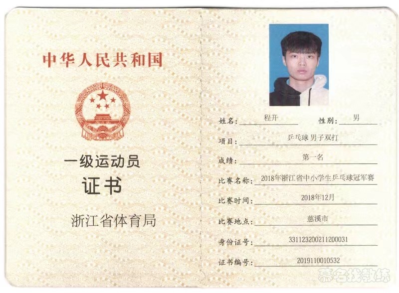 乒乓球 5年教龄 一级运动员